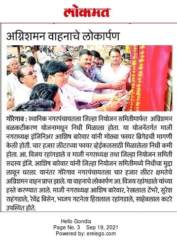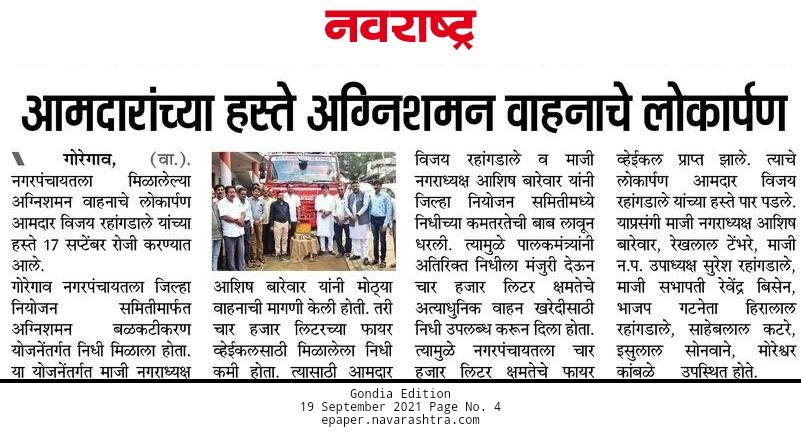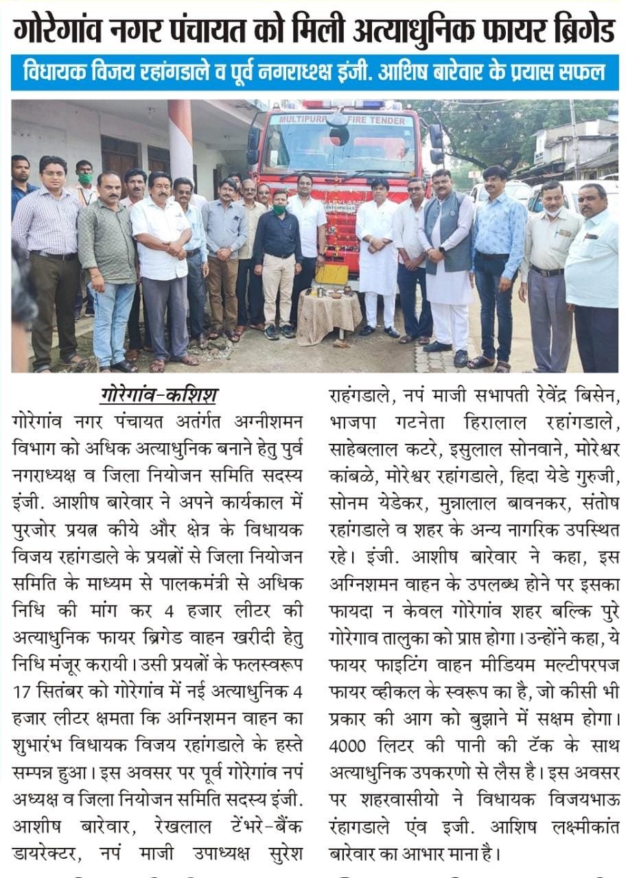 गोरेगांव नगरपंचायत को मिला आत्याधुनिक फायर ब्रिगेड