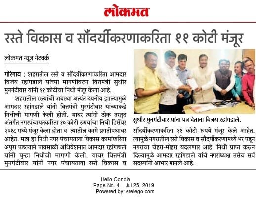 रास्ते विकास व सौंदर्यीकरणकरिता ११ कोटी मंजूर