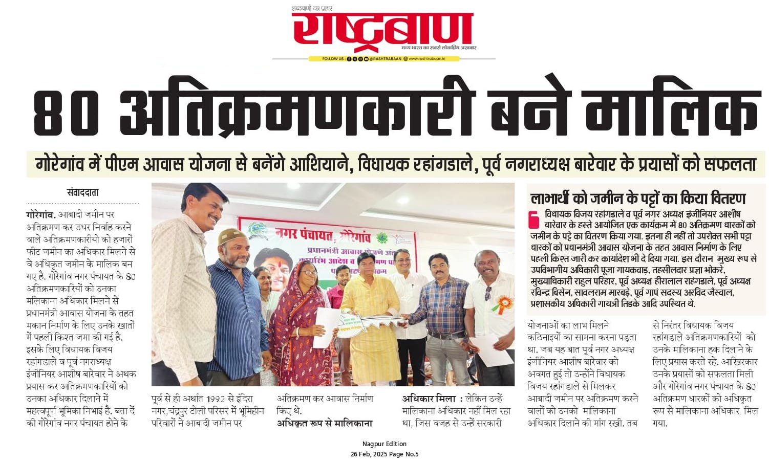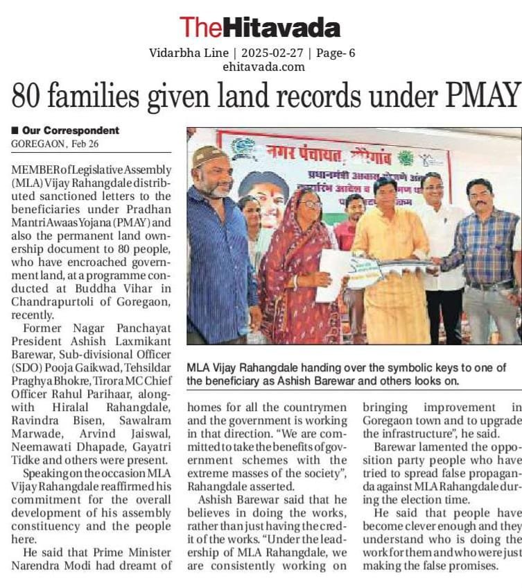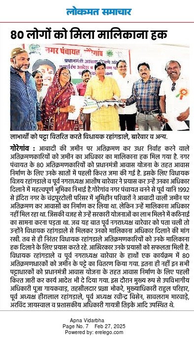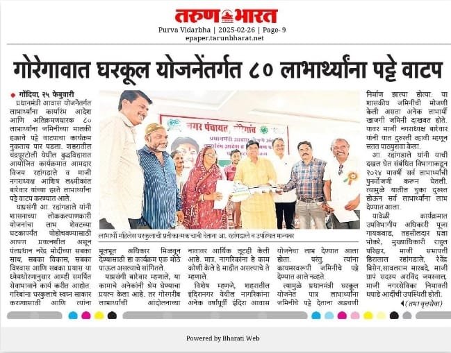 गोरेगावात घरकूल योजनेंतर्गत ८० लाभार्थ्यांना पट्टे वाटप