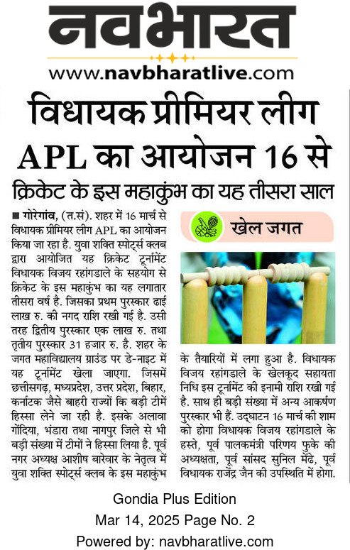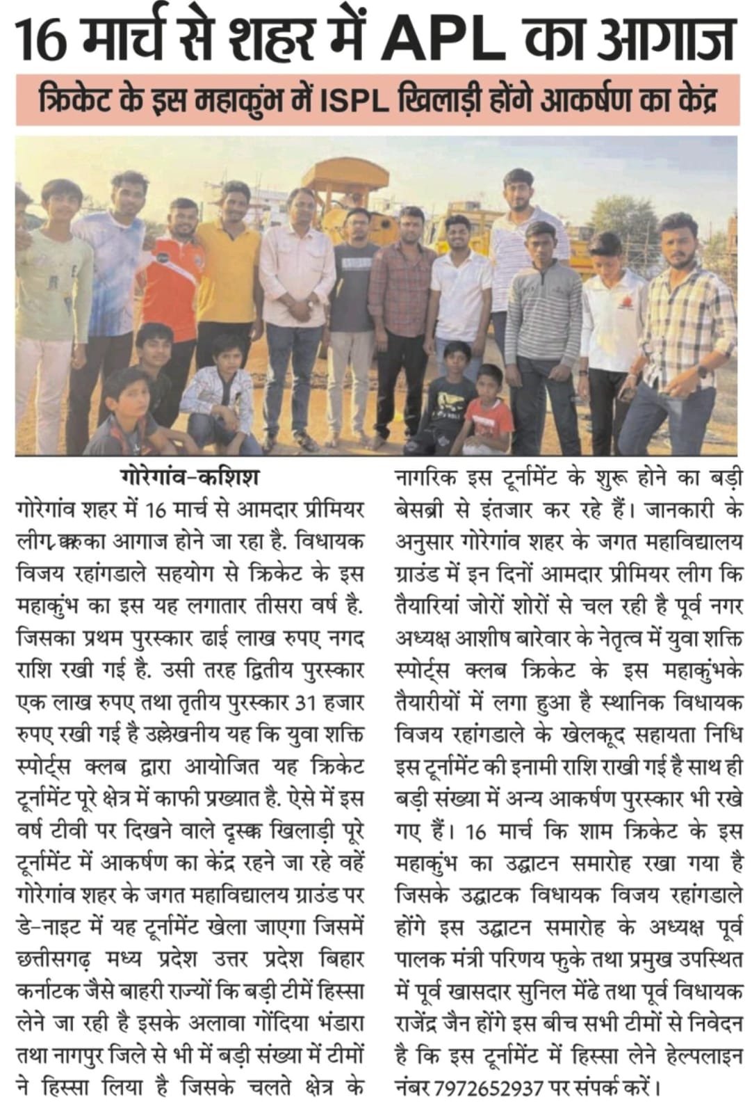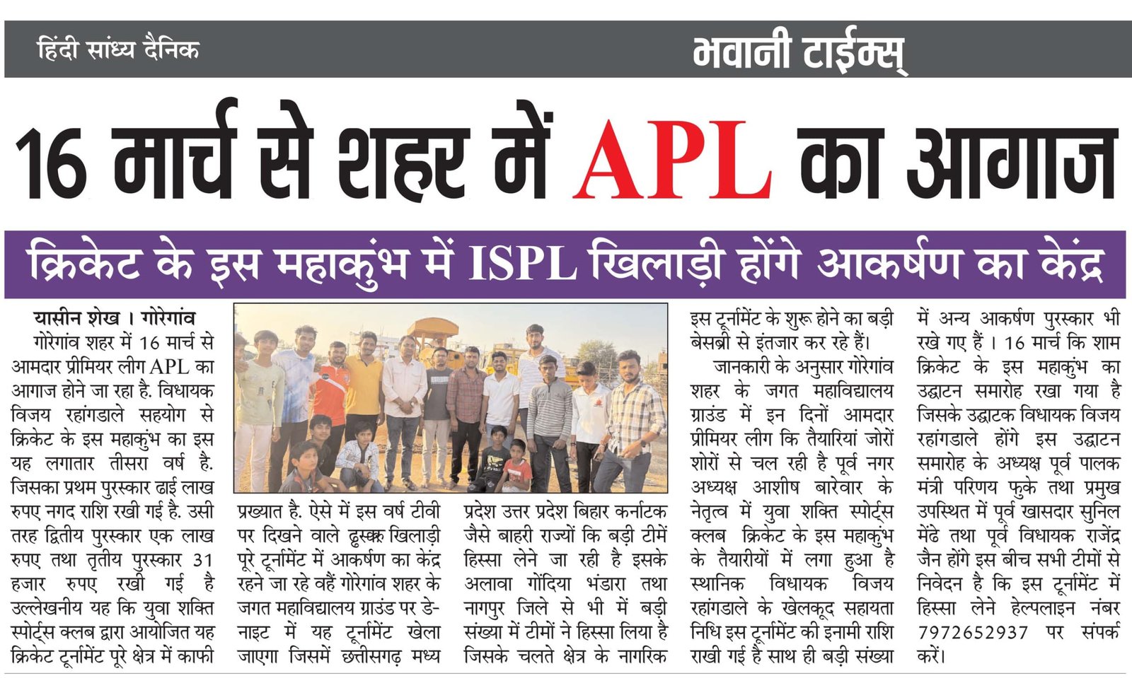 विधायक प्रीमियर लीग APL का आयोजन 16 से क्रिकेट के इस महाकुंभ का यह तीसरा साल