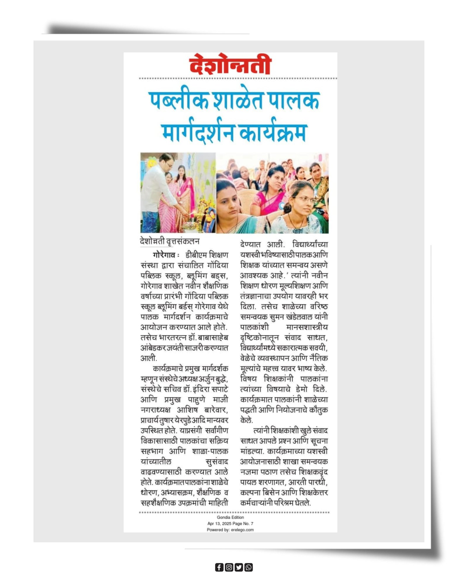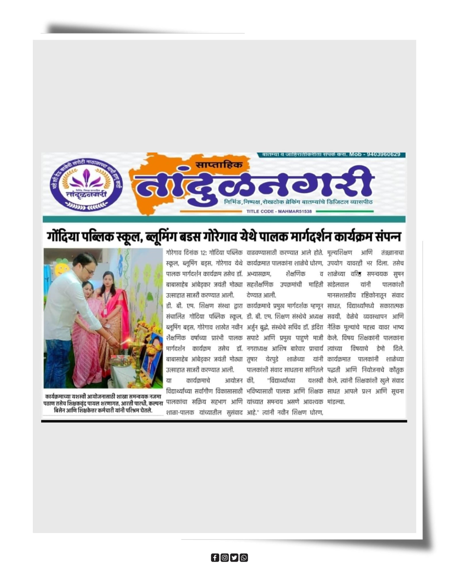 गोंदिया पब्लिक स्कूल, ब्लूमिंग बडस गोरेगाव येथे पालक मार्गदर्शन कार्यक्रम संपन्न