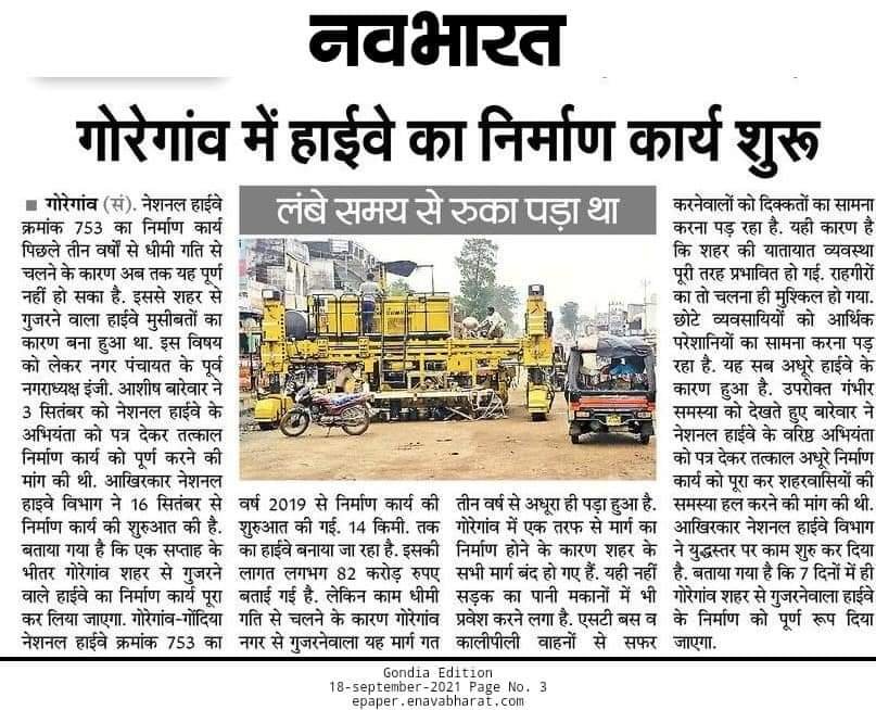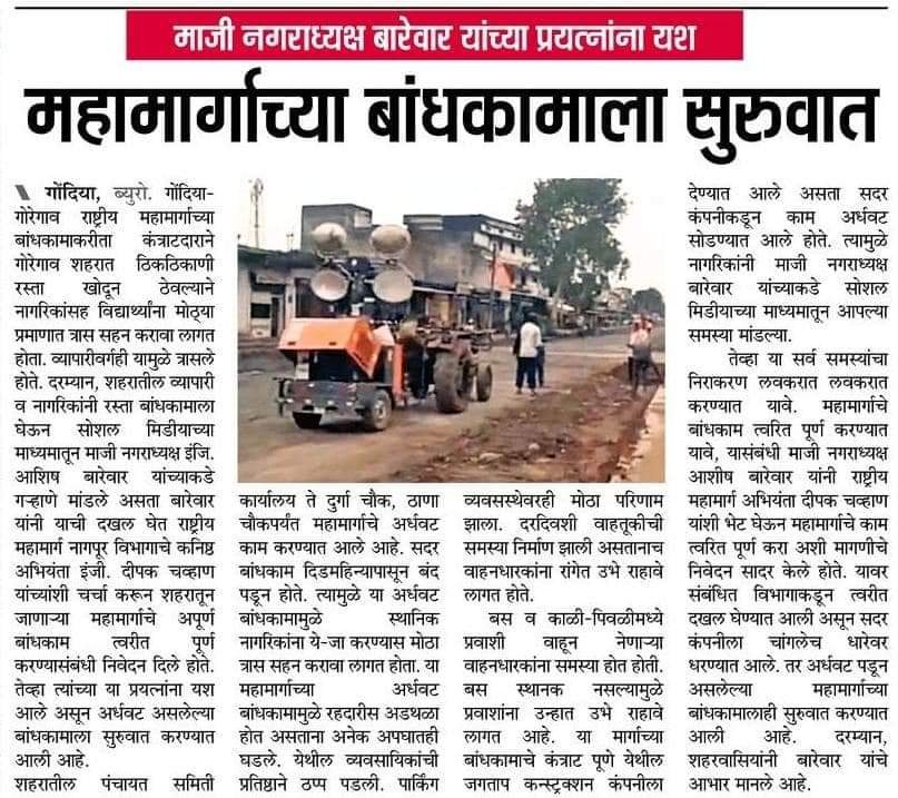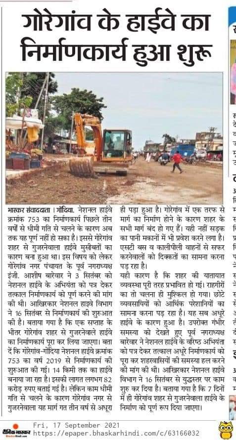 गोरेगांव के हाईवे का निर्माण कार्य हुआ शुरू