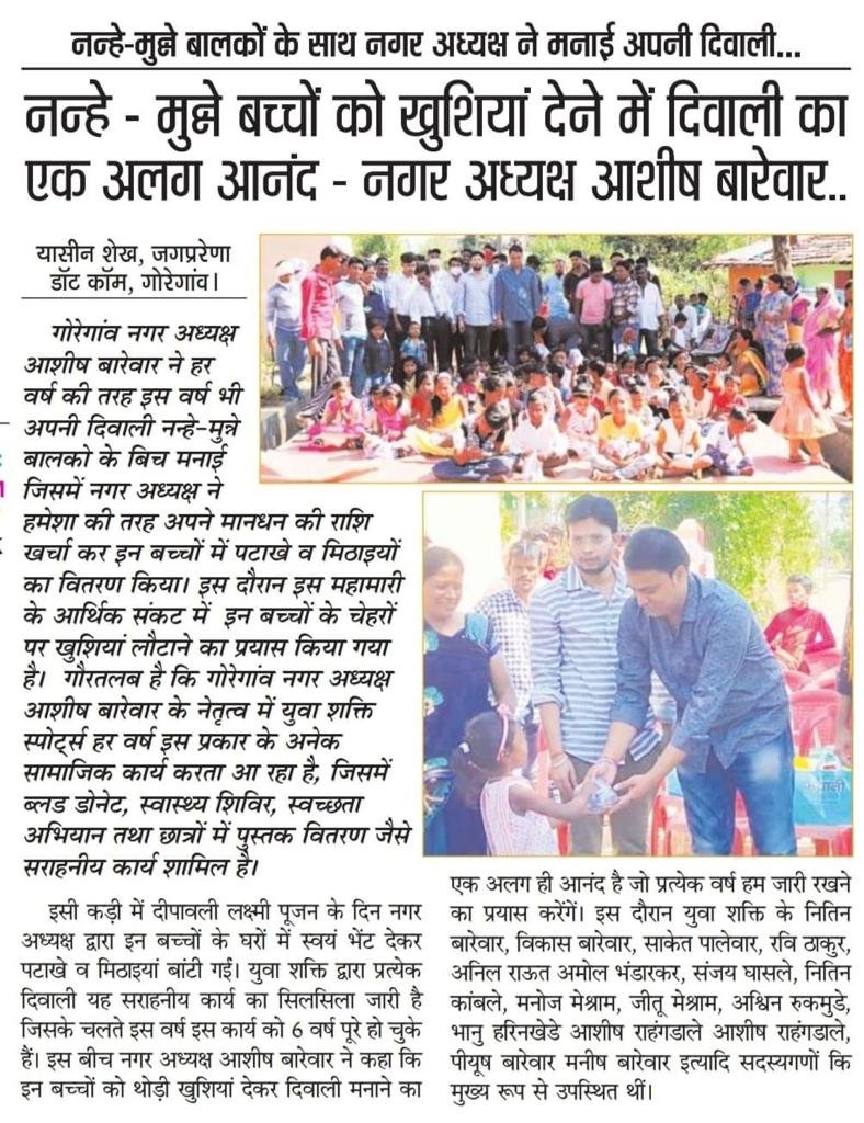 नन्हें-मुन्हें बच्चों को खुशियाँ देने में दीवाली का एक अलग आनंद - नगर अध्यक्ष आशीष बरेवर