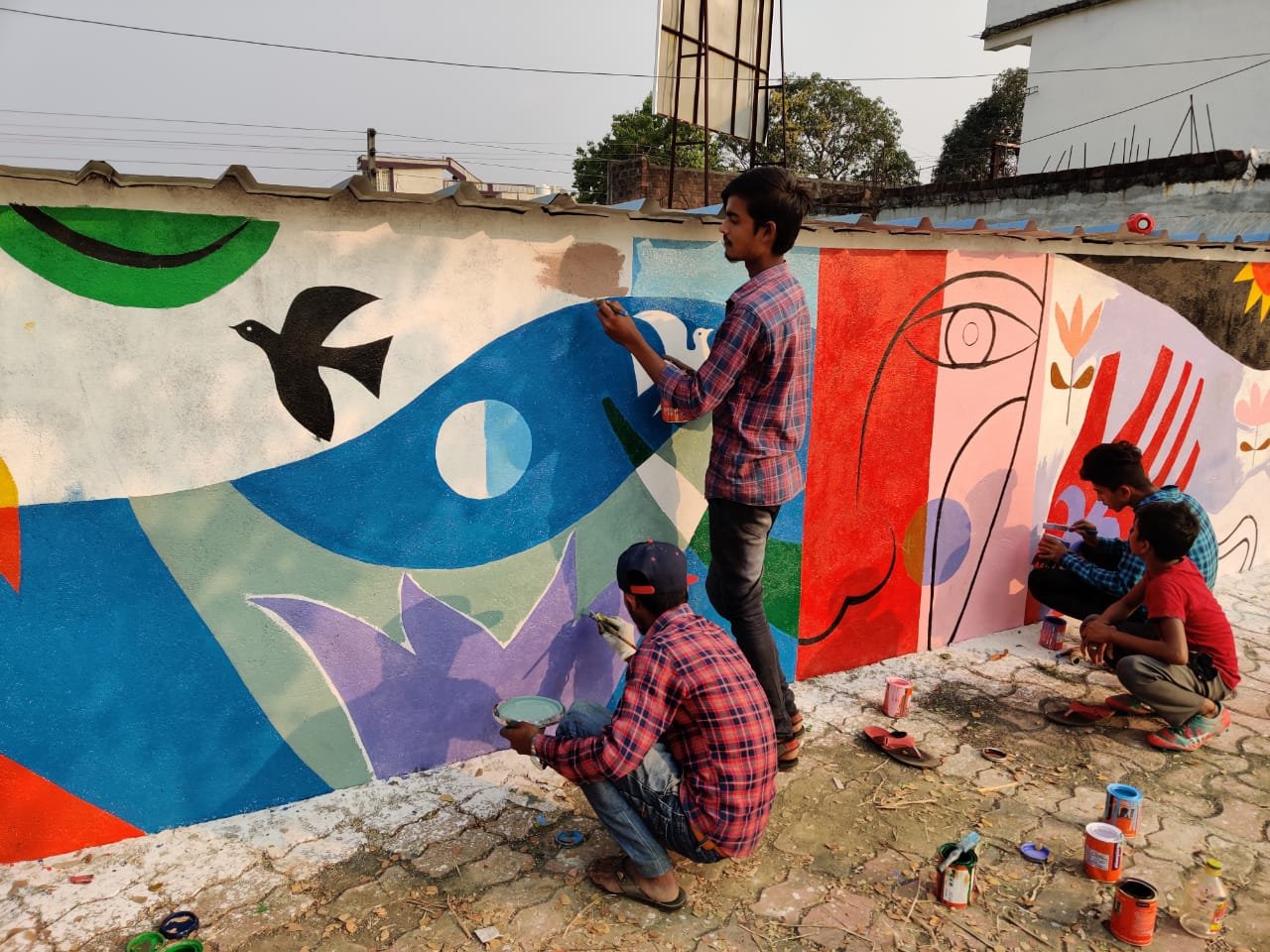 पवन तलाव मध्ये तरुणांनी बनवलेले पँटिंग