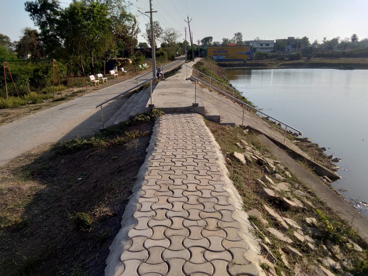 रस्त्याचा शेजारी गट्टू लावण्यात आले.